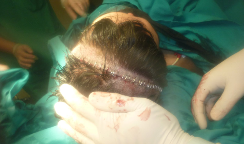 En el tercio superior lo abordamos por incisiones coronales en la raíz del pelo, en la parte superior del cráneo.